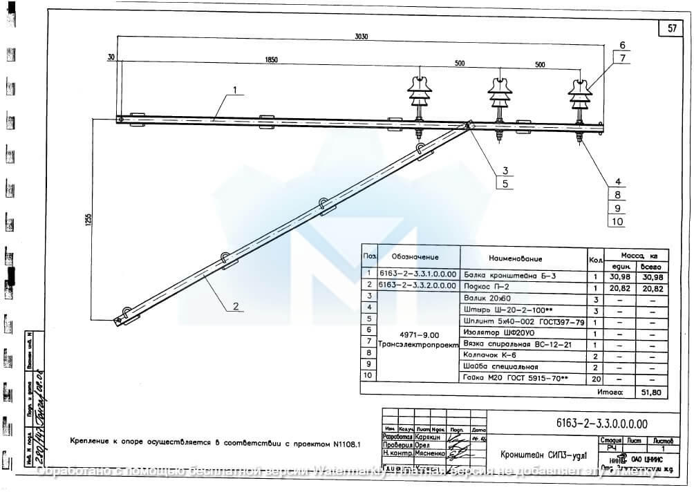 Назначение изделия: кронштейн СИП3-удл1. Для стоек СС 10,4; СС 13,6. Данный кронштейн служит для промежуточной подвески провод СИП 3 (АС) ВЛ-10кВ АБ (ПЭ) на одиночных опорах контактной сети. Крепление проводов осуществляется на штыревых изоляторах типа ШФ-20Г (ШФ-20Г1).