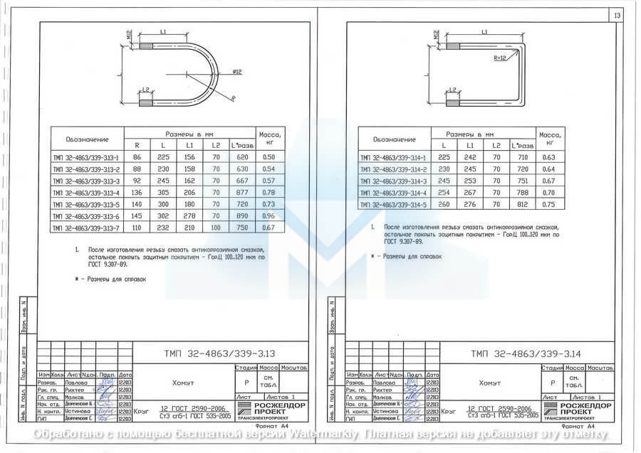 Хомут по типовому проекту ТМП 32-4863/339-3.13-2 предназначен для крепления рамы разъединителя КР-2 (ТМП 32-4863/339-3.9) на опоре типа С1.85/10.1 (С2/11.1).