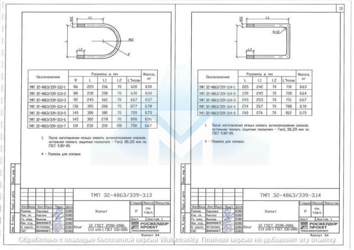 Хомут по типовому проекту ТМП 32-4863/339-3.13-6 предназначен для крепления траверсы крепления автомата управления наружным освещением АОТ (ТМП 32-4863/339-3.21) к опоре типа С1.85/10.1 (С2/11.1).