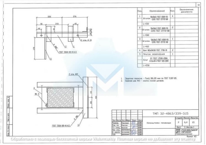 для оснастки опоры типа С1.85/10.1 с разъединителем устанавливаемой для подключения КТП к воздушной линии 6-10 кВ по типовому проекту ТМП 32-4863/339.